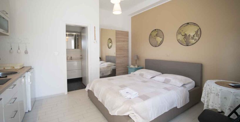 Przytulne studio dla dwóch osób z eleganckim wystrojem i nowoczesną łazienką. Posiada małą kuchnię i balkon, oferując wszystko, czego potrzeba na idealne wakacje. Doskonała lokalizacja w samym sercu Bibinje, zaledwie kilka minut od morza i plaży. Mały sklep i restauracje znajdują się w odległości krótkiego spaceru.